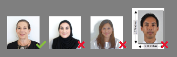 Embora recomendemos que você use um serviço profissional de fotos para visto para garantir que sua foto atenda a todos os requisitos, você mesmo pode tirar a foto. As fotos não devem ser aprimoradas digitalmente ou alteradas para mudar sua aparência de nenhuma forma. Revise os seguintes requisitos técnicos e referências para obter orientação sobre como tirar sua própria foto.